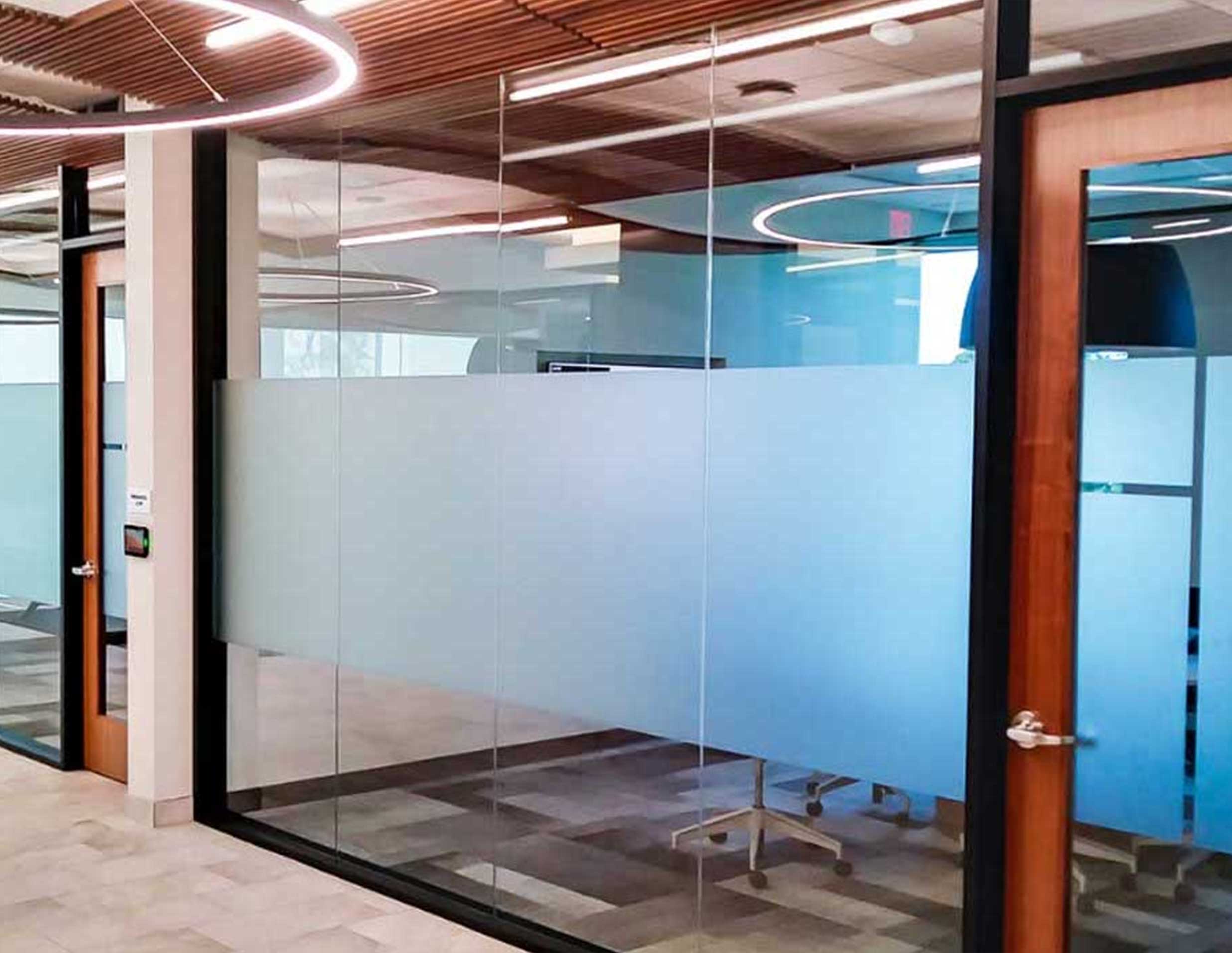 Not every space needs to be plain. Out of our patterned frosting options, we offer a creative touch to glass walls and doors and retaining the core function of privacy. From abstract, organic, and symmetrical styles, elevate your office environment.
